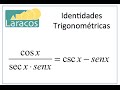 Demostracion de la identidad trigonometrica cosx/(secxsenx)=cscx-senx - YouTube |